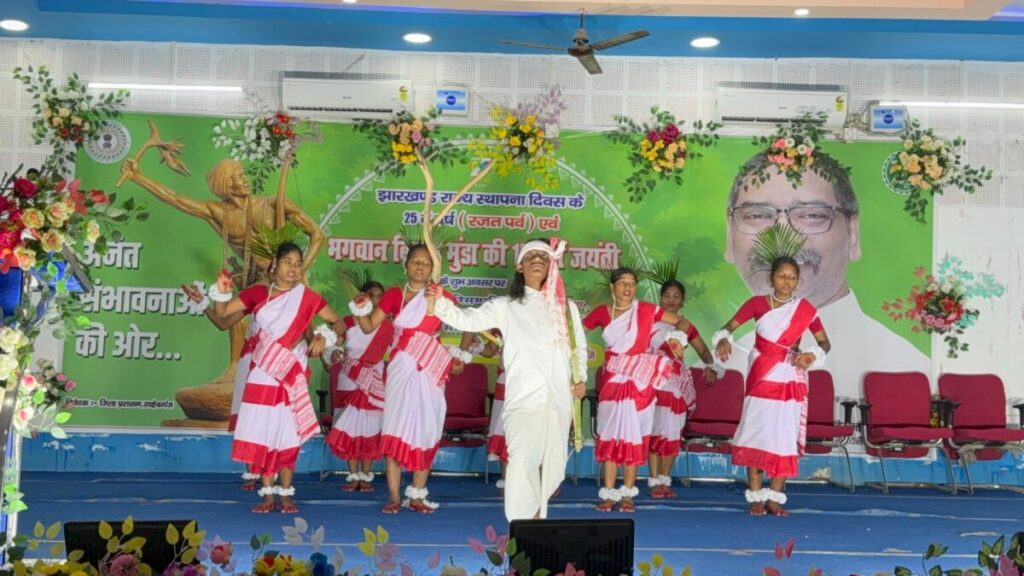 झारखंड राज्य स्थापना के रजत जयंती वर्ष तथा उलगुलान के महानायक धरती आबा भगवान बिरसा मुंडा की 150वीं जयंती के शुभ अवसर पर शनिवार को सिद्धो कान्हू सभागार में भव्य जिला स्तरीय समारोह का आयोजन किया गया। कार्यक्रम में जिले के जनप्रतिनिधि, वरिष्ठ प्रशासनिक अधिकारी, पुलिस विभाग, स्थानीय निकायों के प्रतिनिधि, शिक्षण संस्थानों के छात्र–छात्राएँ, ग्रामीण जनता तथा मीडिया कर्मी बड़ी संख्या में उपस्थित हुए। इसक्रम में मुख्यमंत्री उत्कृष्ट बालिका उच्च विद्यालय पोखरिया एवं कस्तूरबा गांधी बालिका उच्च विद्यालय साहिबगंज की छात्राओं द्वारा रंगारंग कार्यक्रम प्रस्तुत किया गया।