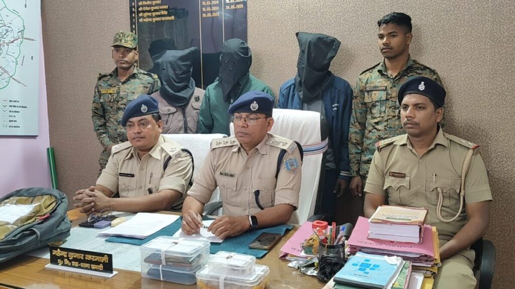पुलिस अधीक्षक द्वारा त्वरित कार्रवाई करते हुए एक छापामरी दल का गठन किया गया । सुचना का सत्यापन एवं आवश्यक कार्रवाई करने हेतु छापामरी दल चेटर मैदान गुमला पहुँचकर आस-पास निरीक्षण करने लगा। इस दौरान गुमला की तरफ से तीन व्यक्ति आ रहा था ,तभी पुलिस को देखकर तीनों व्यक्ति भागने लगा। जिसे पुलिस बल के सहयोग से तीनों व्यक्ति को पकड़ लिया गया। नाम व पता पूछने पर पुलिस के हत्थे चढ़े बादल साहु उर्फ बादल उम्र 33 वर्ष पे० भुनेश्वर साहु उर्फ भुनेश्वर उर्फ नौथा, सा०-चाहा वैरागी बगान थाना+जिला-गुमला, विकाश कुमार बैठा उम्र 24 वर्ष पे०-स्व० राजेश बैठा सा०-लक्ष्मण नगर थाना जिला-गुमला तथा सुनील प्रजापति उम्र 22 वर्ष पे० रविन्द्र प्रजापति सा०-भण्डरा भौरो थाना-भण्डरा जिला-लोहरदगा बताया।