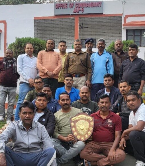 जिसमे कुश्ती में एक गोल्ड मेडल एक सिल्वर मेडल,पंजा लड़ाई में एक गोल्ड मेडल,वेट लिफ्टिंग में एक गोल्ड मेडल,बैडमिंटन में थर्ड स्थान,टेबल टेनिस तथा फुटबॉल में उपविजेता के रूप में प्रदर्शन रहा।सभी खिलाड़ियों को समादेष्टा श्रीमती पुनिया , पुलिस उपाधीक्षक, लाइन बाबू, सुबेदार तथा सभी जैप 9 परिवार की ओर से बधाई दी गई तथा भविष्य में और बेहतर प्रदर्शन के लिए उत्साहवर्धन किया गया।