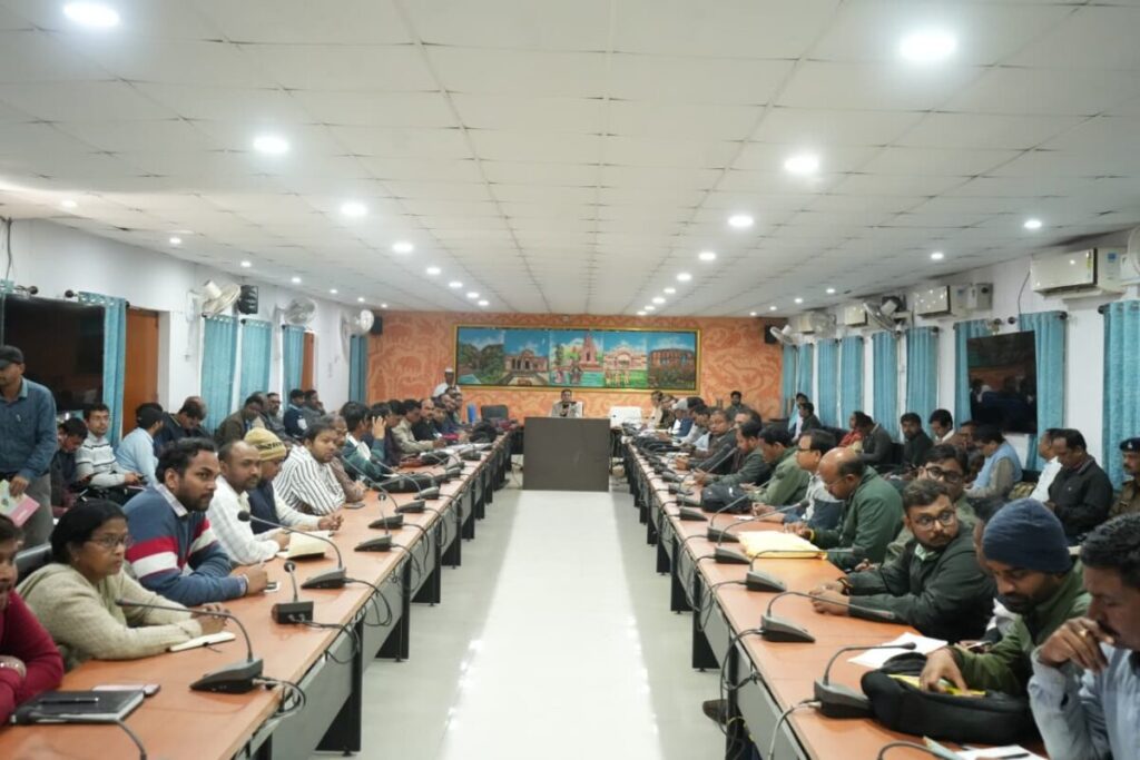 झारखंड अधिविद्य परिषद, राँची द्वारा संचालित वार्षिक माध्यमिक परीक्षा–2026 एवं इंटरमीडिएट परीक्षा (कला, विज्ञान एवं वाणिज्य)–2026 के सफल, कदाचारमुक्त एवं शांतिपूर्ण माहौल में संचालन को लेकर उपायुक्त हेमंत सती की अध्यक्षता में समाहरणालय सभागार में प्रतिनियुक्ति दंडाधिकारी, केंद्राधीक्षक एवं पर्यवेक्षकों के साथ बैठक आयोजित की गई। बैठक में जिला शिक्षा पदाधिकारी दुर्गानंद झा,सभी प्रखंड शिक्षा पदाधिकारी, केंद्राधीक्षक एवं संबंधित विभागीय कर्मी उपस्थित थे।